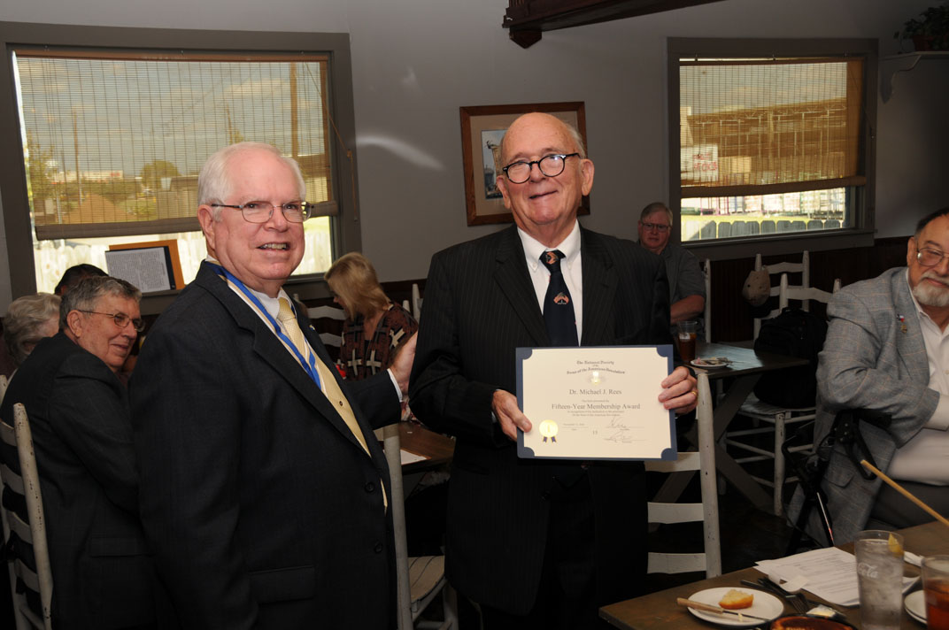 Dr. Michael J Rees receives 15-year Membership Award from President Win Avera 12 Nov 2016