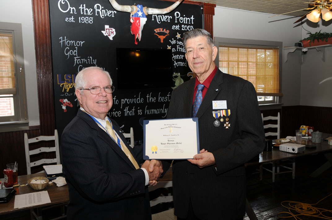 President Win Avera presents the Roger Sherman Award Certificate to William Sanders 12 Nov 2016