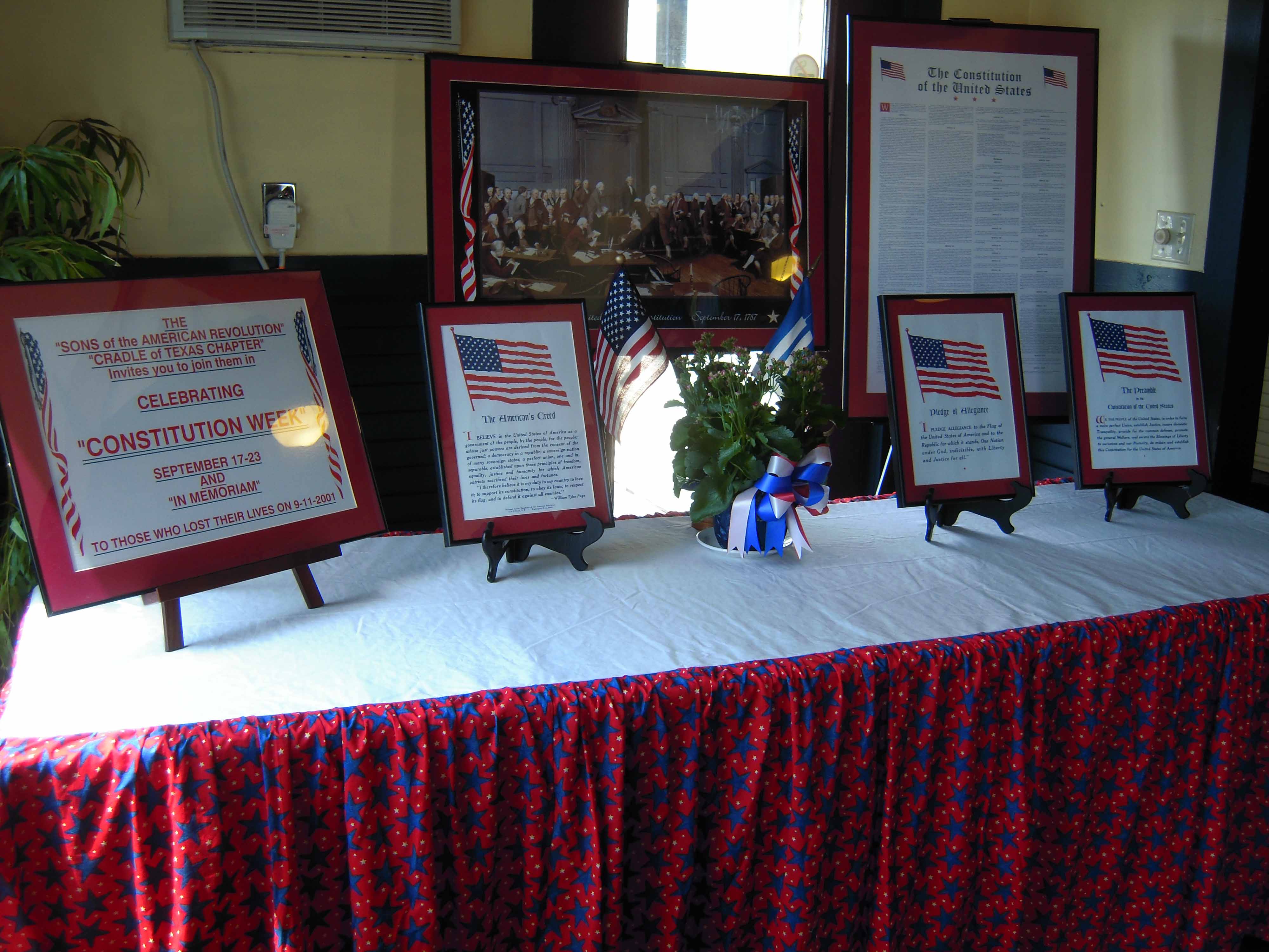 This photo gallery illustrates some of the Cradle of Texas Chapter #33 Sons of the American Revolution’s historical participation in patriotic, community, civic, educational events and ceremonies. Click on an image to open a larger version in a viewer. Use the right and left arrows in the viewer to scroll through the gallery. When finished, click the small “X” in the upper right corner to exit the viewer and return to the gallery. Our chapter meets January through May and September through December usually on the second Saturday of the month.