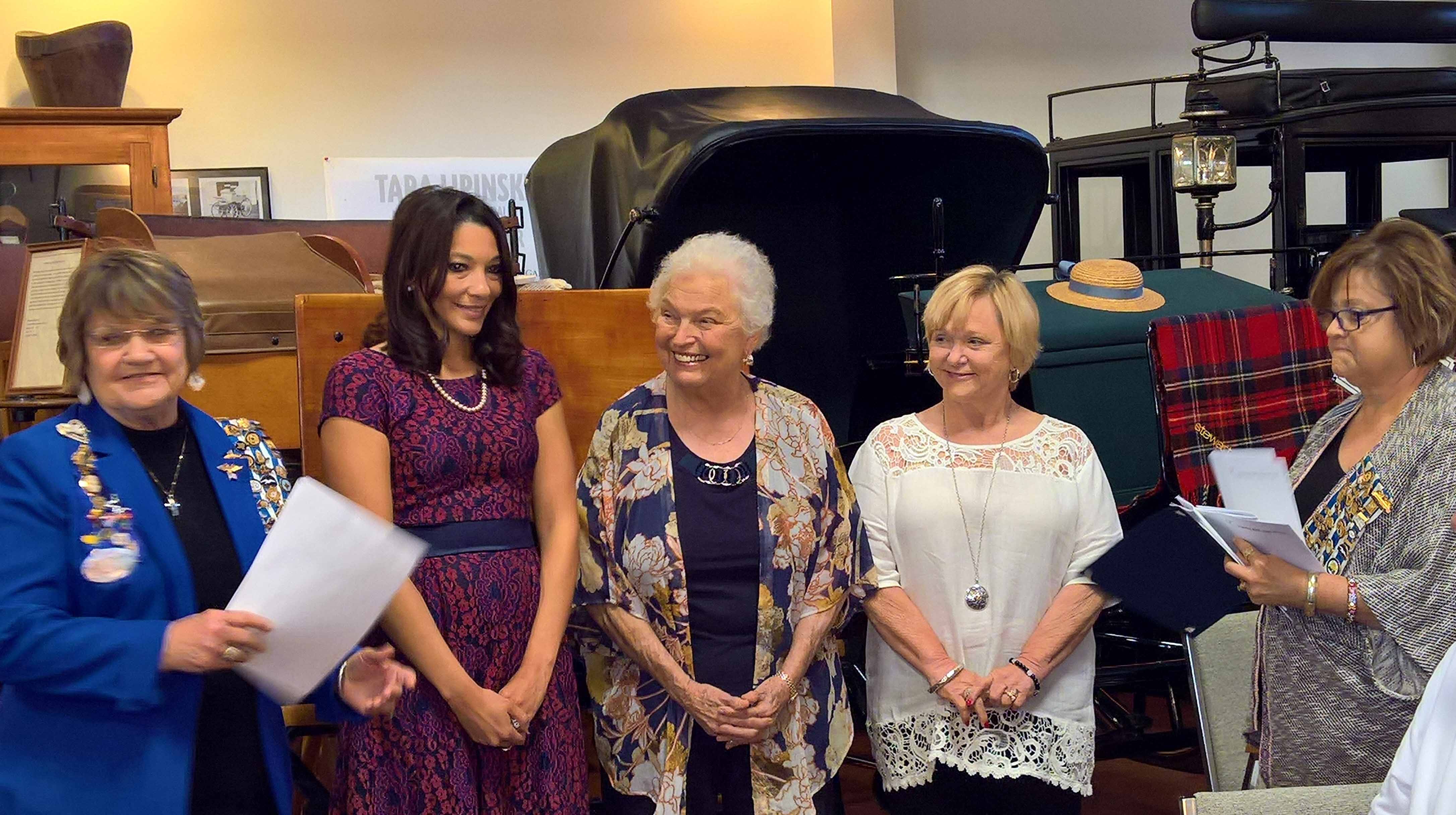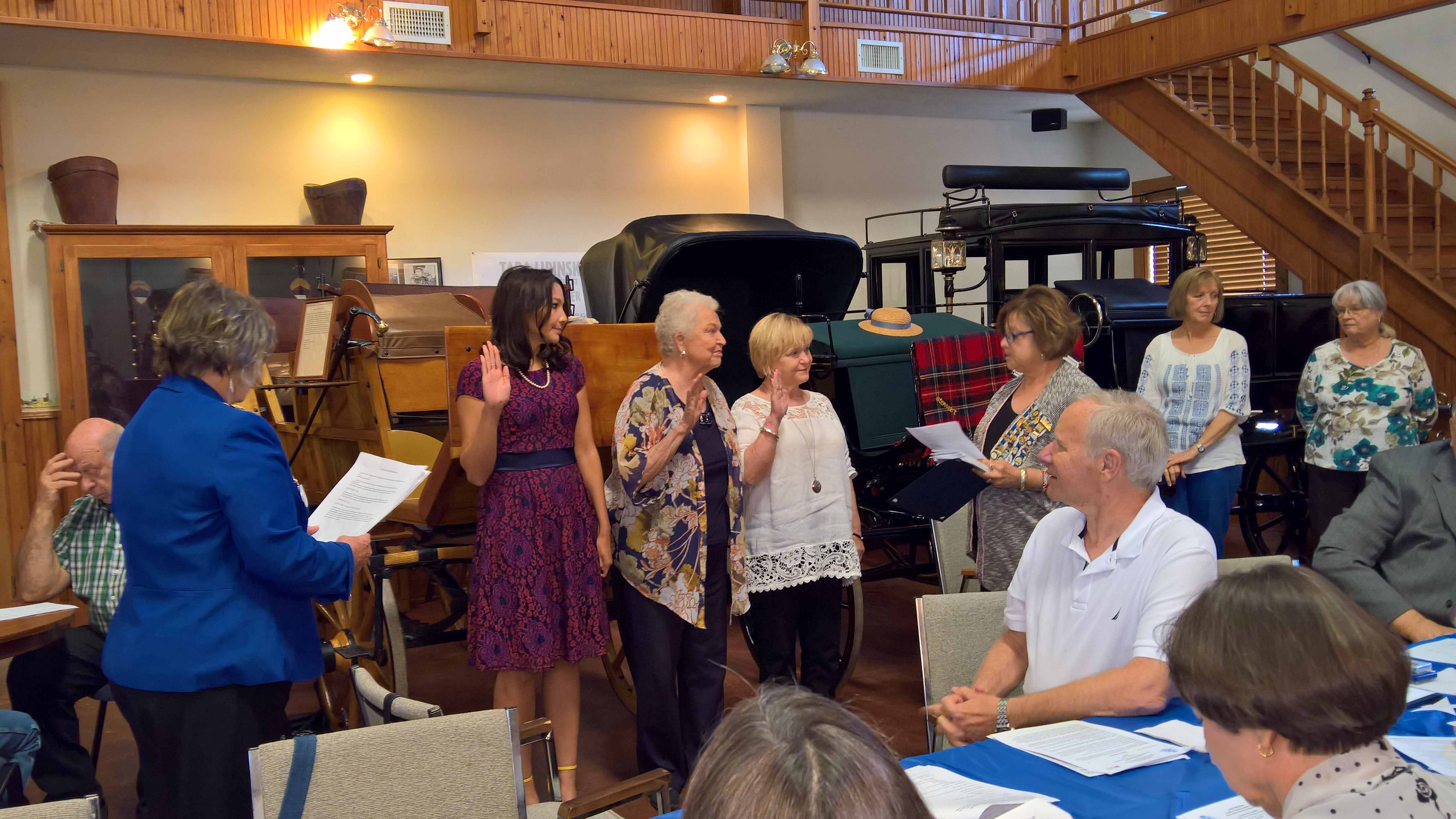 Comfort Wood DAR Regent Hazel Foltyn and Debra Hamman administer the induction oath to Jamie Britt, Betty Muegge and Karen Rees on 8 Oct 2016