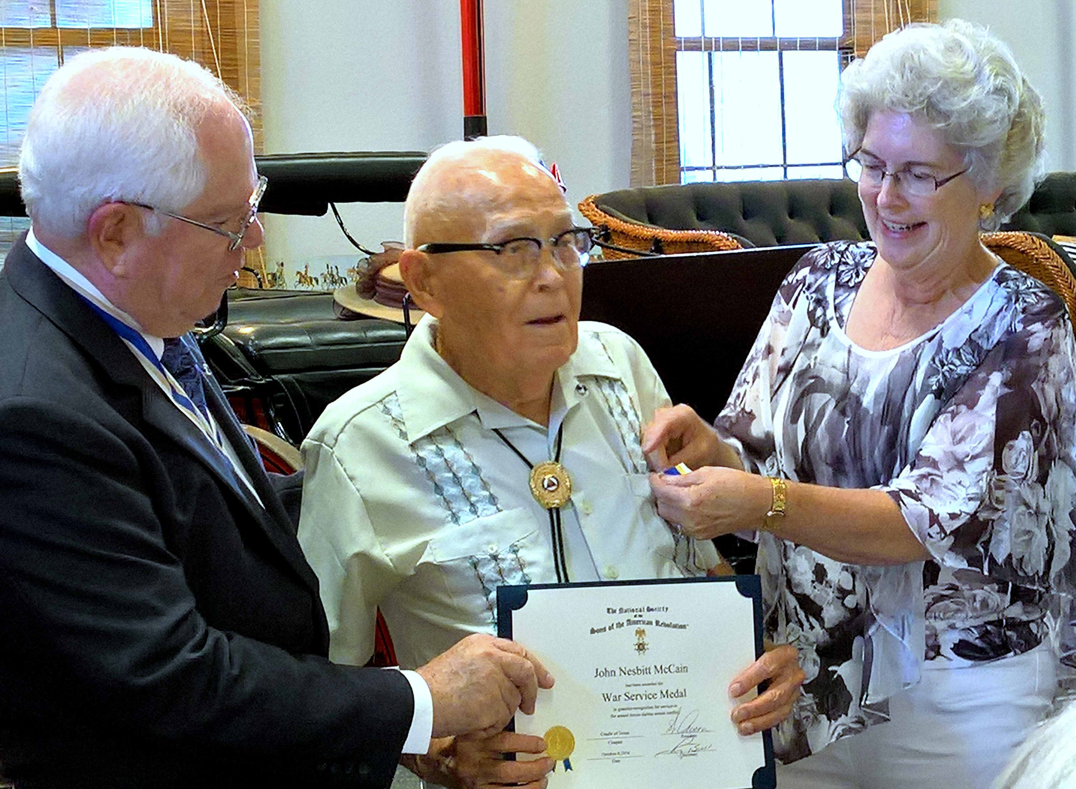 President Win Avera presents War Service Medal to John N McCain 0n 8 Oct 2016