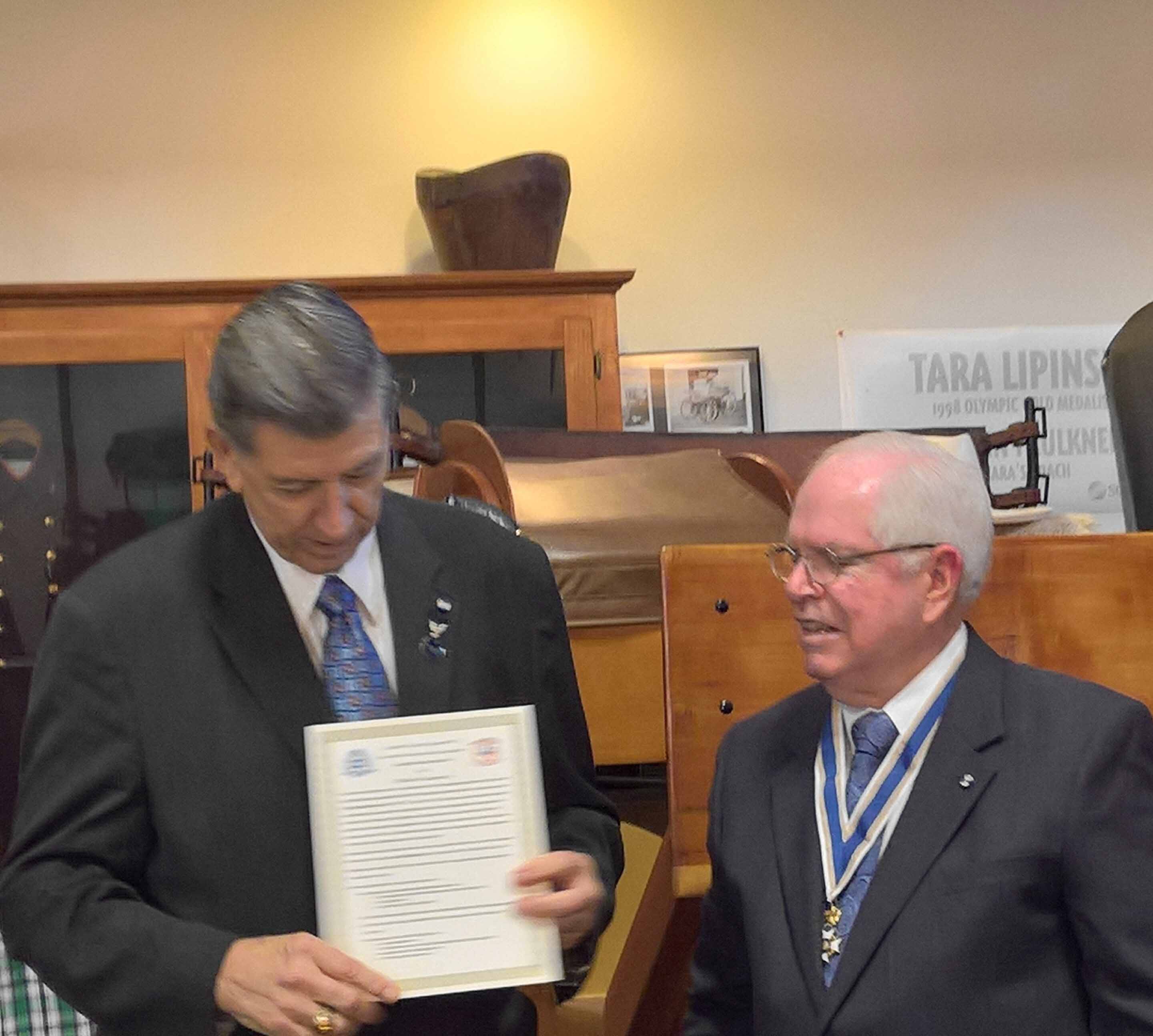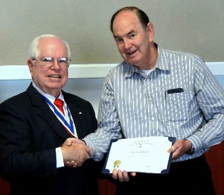 Thomas E Palmer receives his 15-Year Membership Award from President Winston Avera 12 Nov 2016