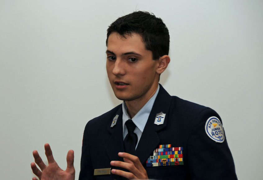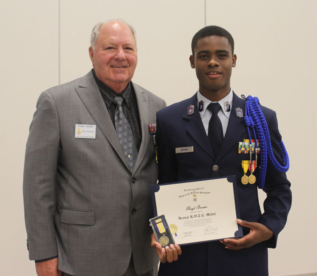 Rodney Weems presents Bronze ROTC medal and award to Brazoswood Cadet Floyd Brown 5 May 2018