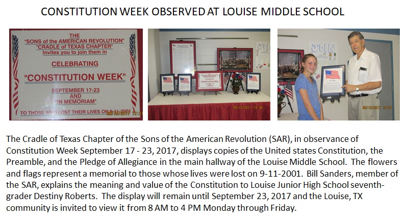 Constitution Week Observance at Louise Middle School, Louise, TX 2018