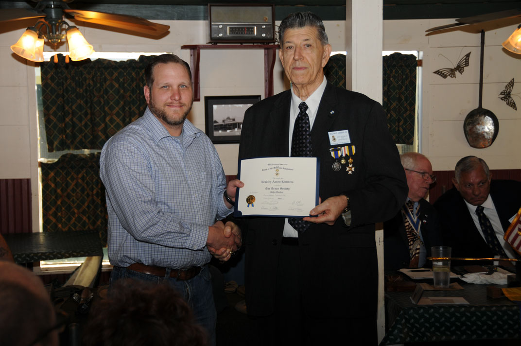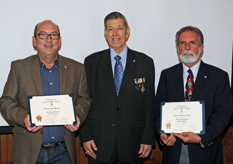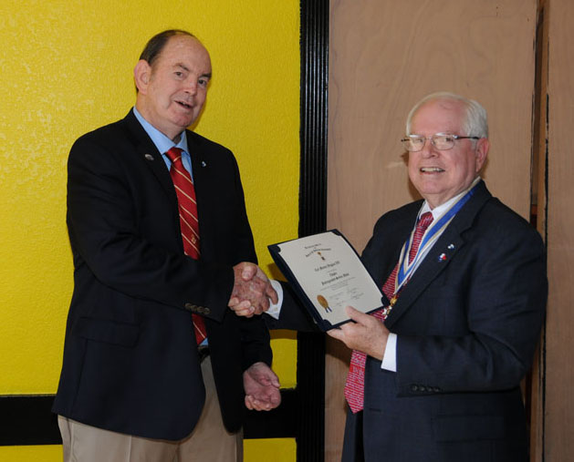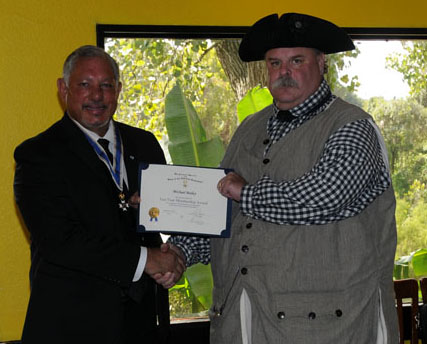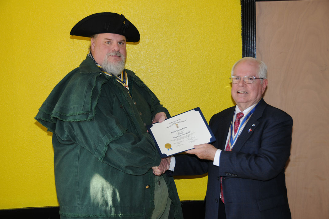 Compatriot Dan Bernard receives SAR Certificate of Membership from Registrar Bill Sanders