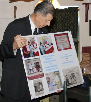 Bill Sanders describes the Constitution Week display he and wife, Pat, presented to students at Louise (TX) Middle and High School 17-23 Sep 2017
