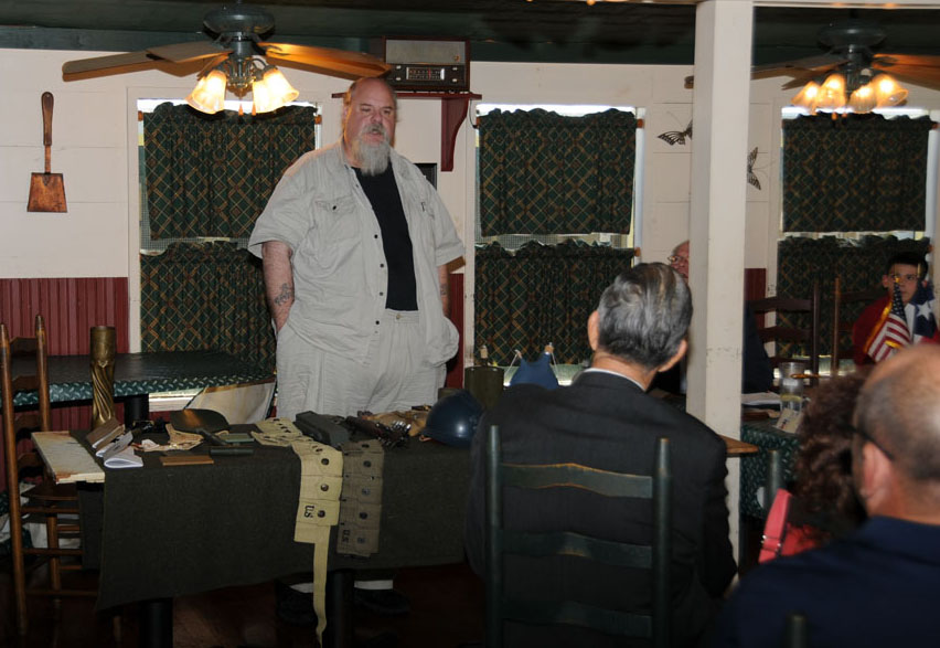 TXSSAR President Thomas Jackson points to some important areas of the American Revolution Fat Grass, Bay City, TX 12 May 2018
