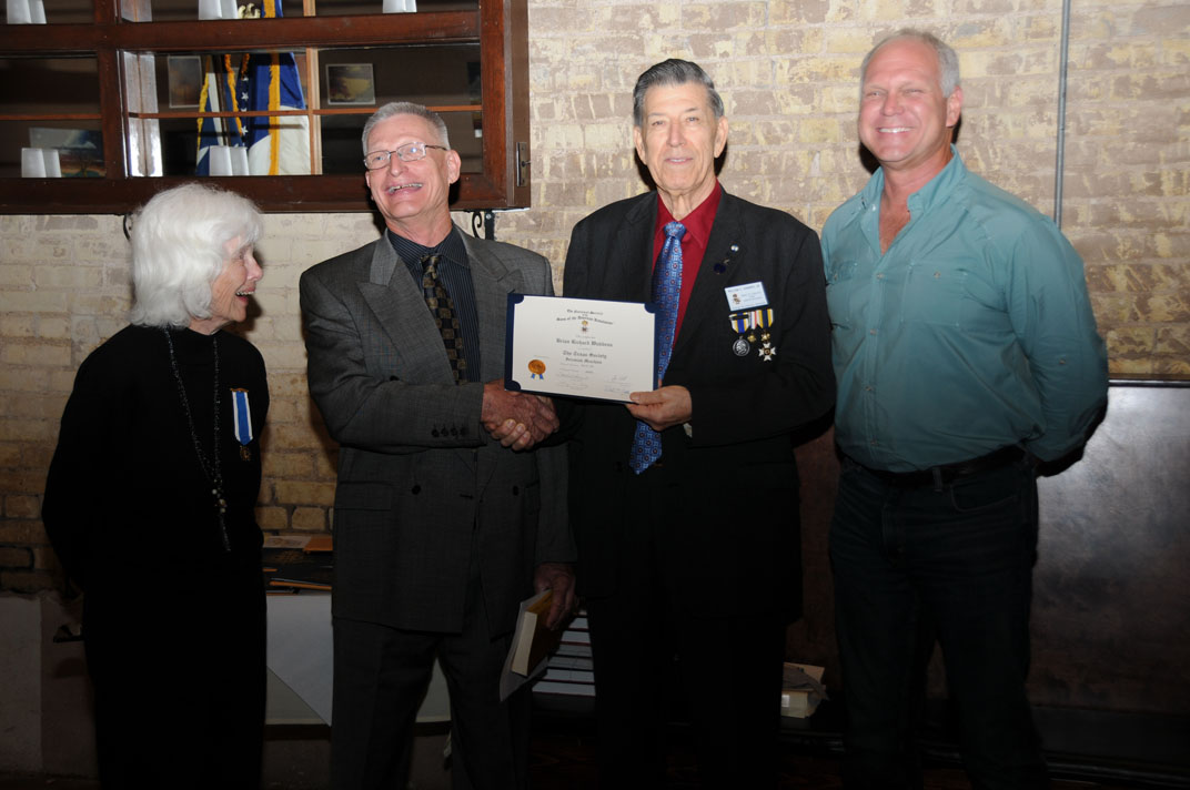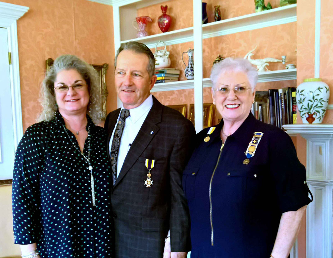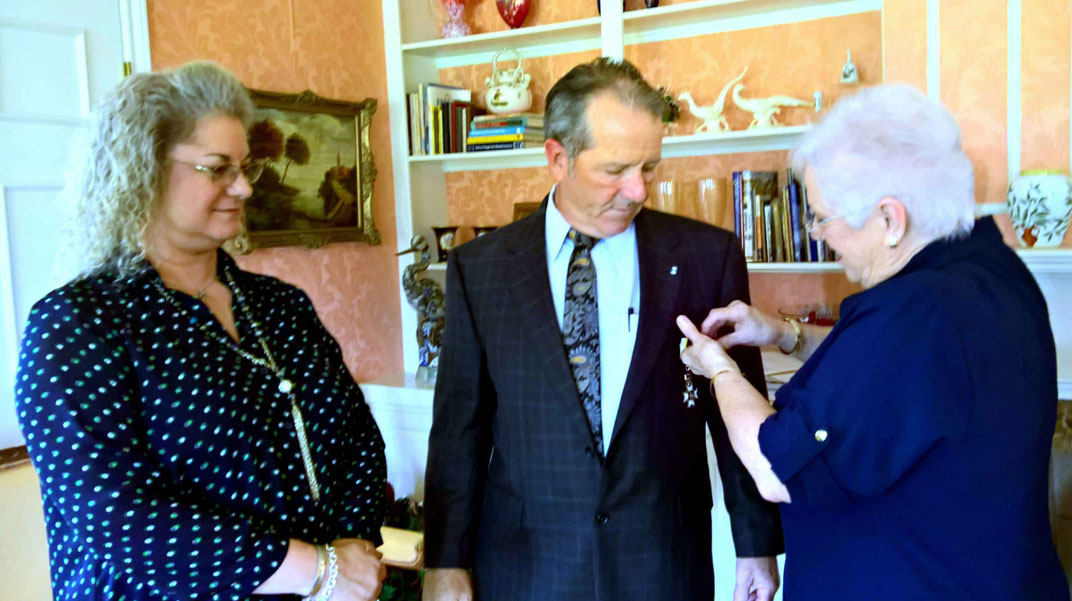 Wife Terrisa looks on as Judy Bernard pins SAR medal on Dan Bernard