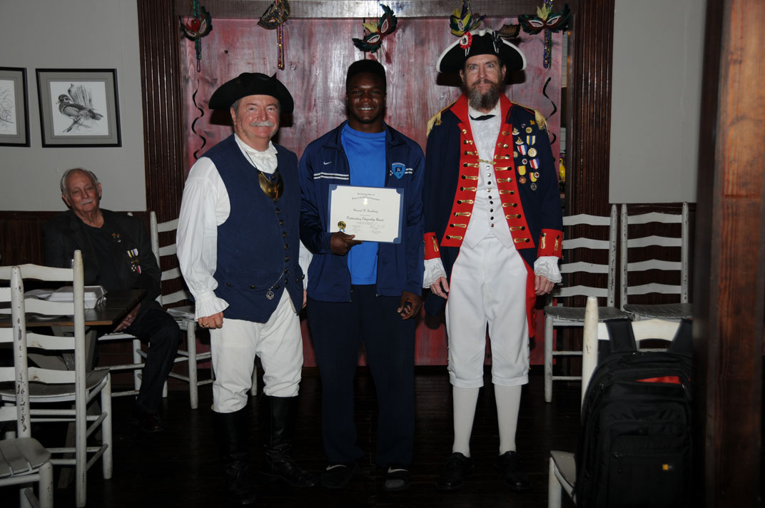 Michael Bailey (left) receives the Bronze Roger Sherman Medal from President Win Avera for outstanding contributions in many areas to the SAR