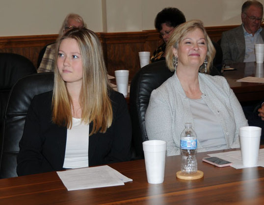 Registrar Bill Sanders presents the Certificate of Membership to new inductee, Drew Winters