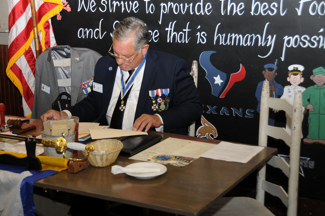 Cradle of Texas Chapter #33 President Ray Beall prepares to kick off the new chapter year River Point Restaurant, Lake Jackson, TX 8 Sep 2018