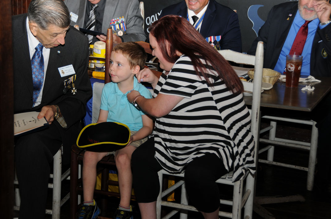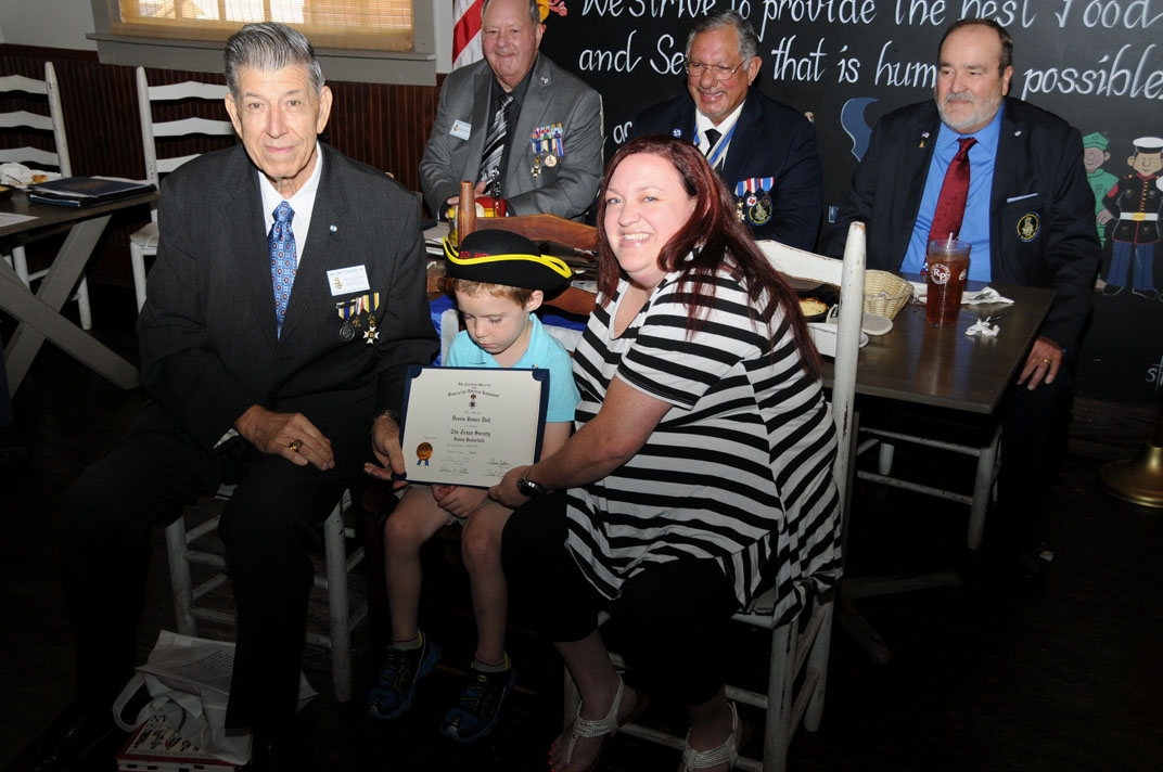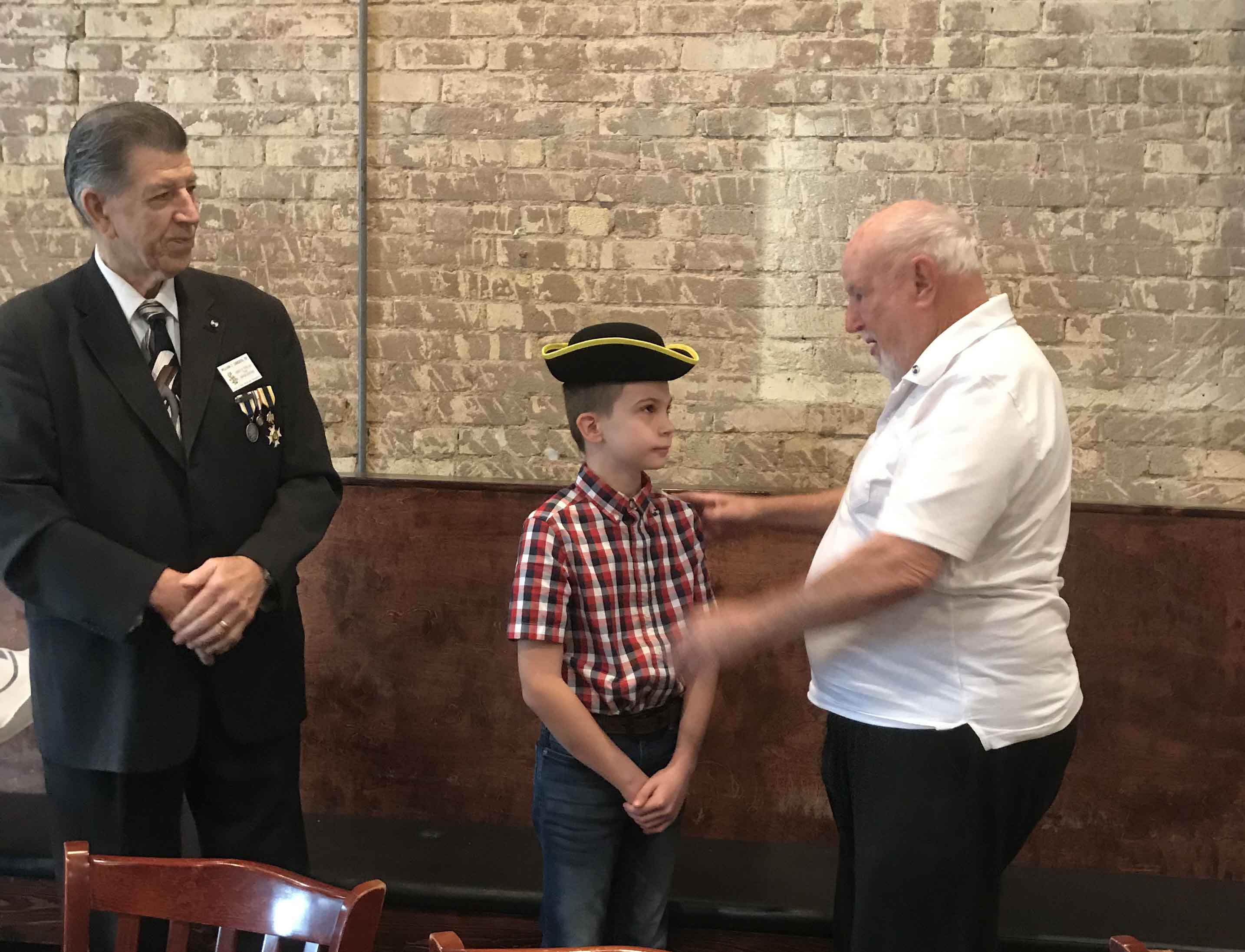 Compatriot Jack R Newman presents Tricorn hat to inductee and great-grandson Drew Winters 17 Nov 2018