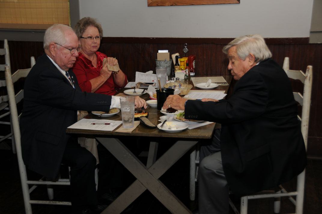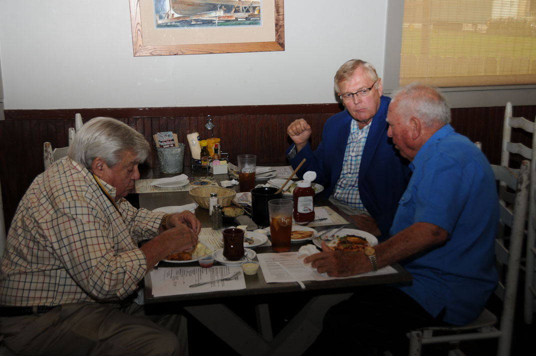 Vice President Rodney Weems, President Ray Beall and Treasurer Nelson Leopold chowing down at River Point Restaurant, Lake Jackson, TX 8 Sep 2018