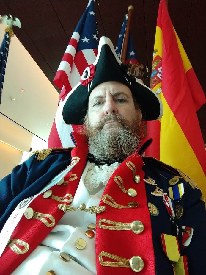 Michael Bailey in the uniform of a Revolutionary War patriot