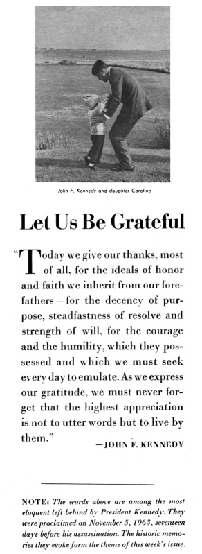 President John F Kennedy Thanksgiving statement Nov 1963. Remembered 22 Nov 2018