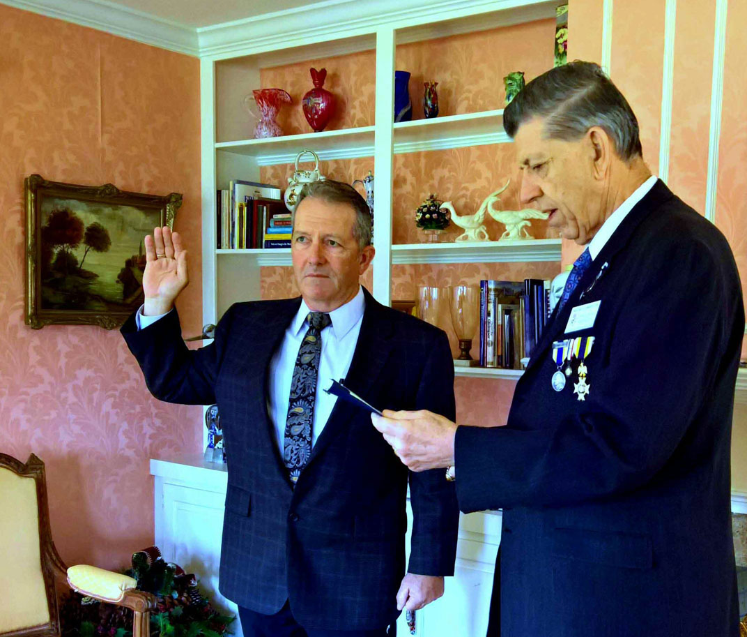 Bill Sanders administers oath to SAR inductee Dan Bernard 13 Feb 2018